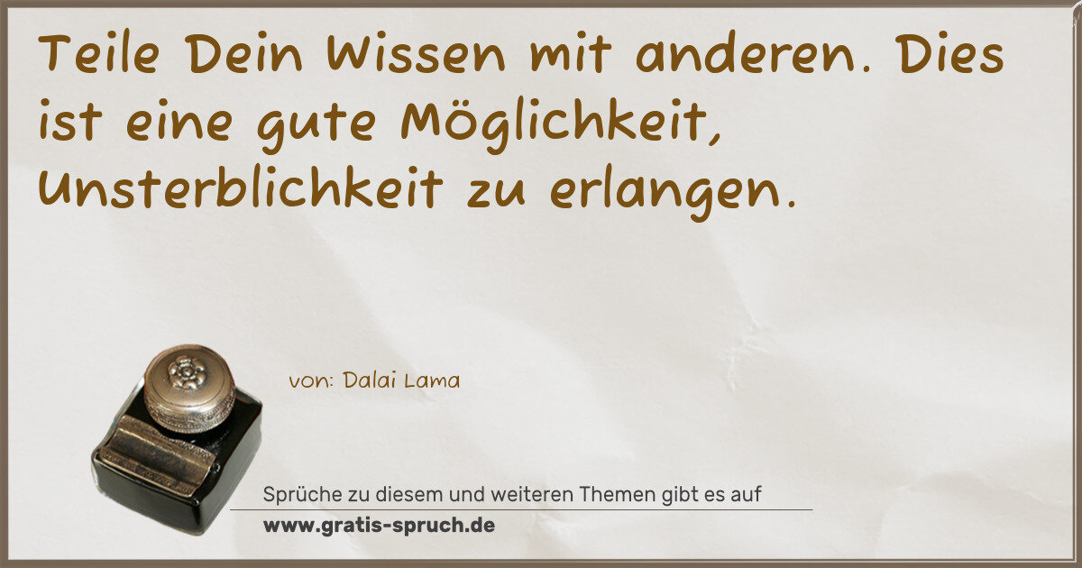 Teile Dein Wissen mit anderen. Dies ist eine gute Möglichkeit, Unsterblichkeit zu erlangen.