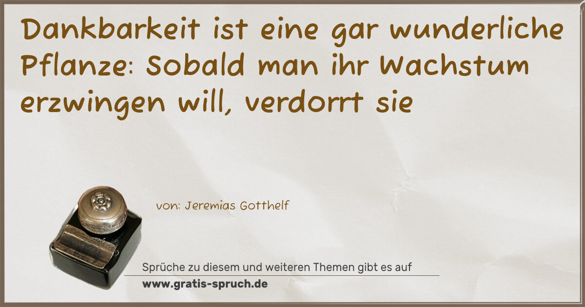 Dankbarkeit ist eine gar wunderliche Pflanze: Sobald man ihr Wachstum erzwingen will, verdorrt sie