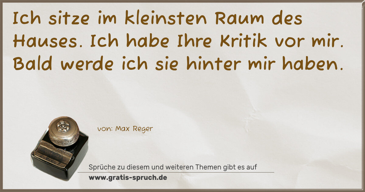 Ich sitze im kleinsten Raum des Hauses. Ich habe Ihre Kritik vor mir. Bald werde ich sie hinter mir haben.