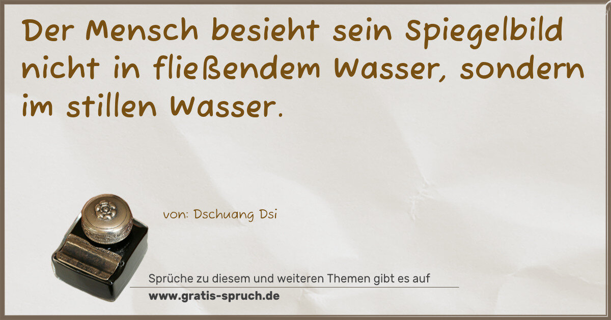 Der Mensch besieht sein Spiegelbild nicht in fließendem Wasser, sondern im stillen Wasser.