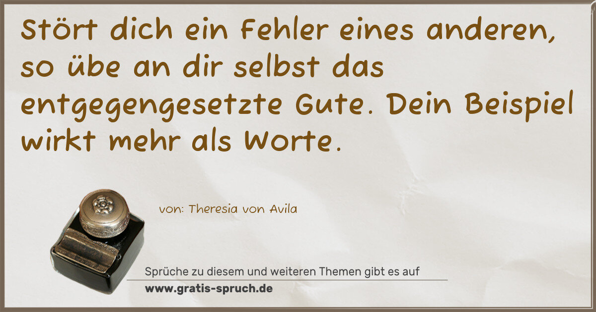 Stört dich ein Fehler eines anderen, so übe an dir selbst das entgegengesetzte Gute. Dein Beispiel wirkt mehr als Worte.