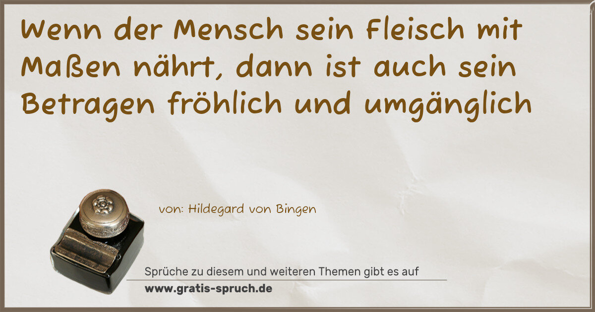 Wenn der Mensch sein Fleisch mit Maßen nährt, dann ist auch sein Betragen fröhlich und umgänglich