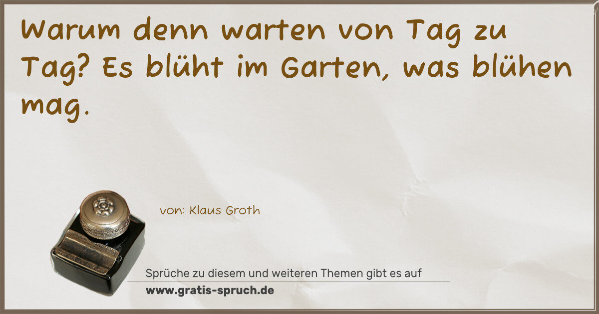 Warum denn warten von Tag zu Tag? Es blüht im Garten, was blühen mag.
