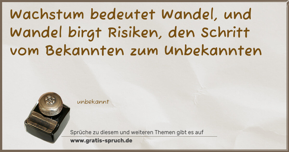 Wachstum bedeutet Wandel, und Wandel birgt Risiken, den Schritt vom Bekannten zum Unbekannten