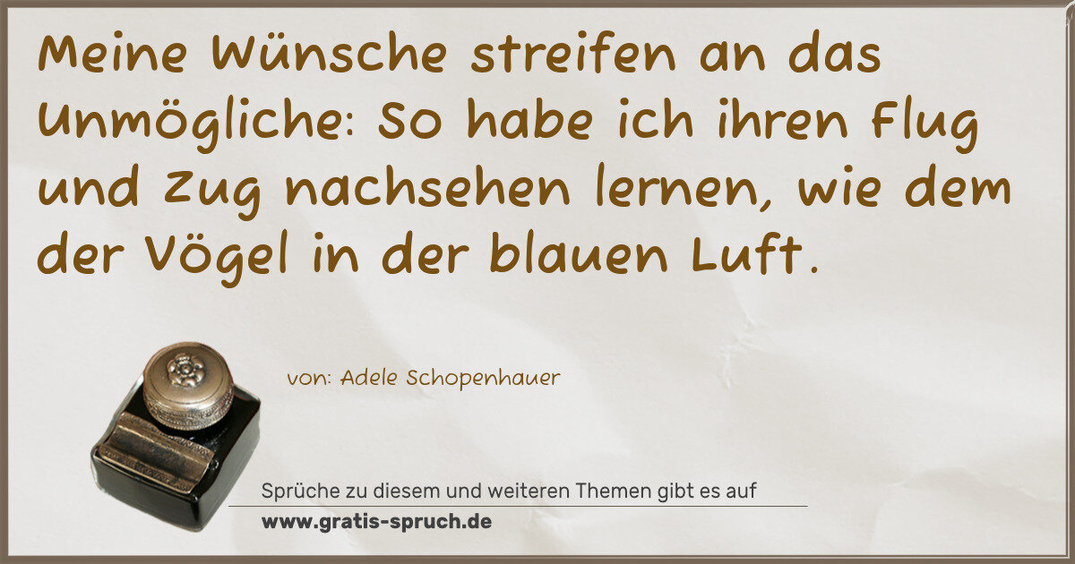 Meine Wünsche streifen an das Unmögliche: So habe ich ihren Flug und Zug nachsehen lernen, wie dem der Vögel in der blauen Luft.