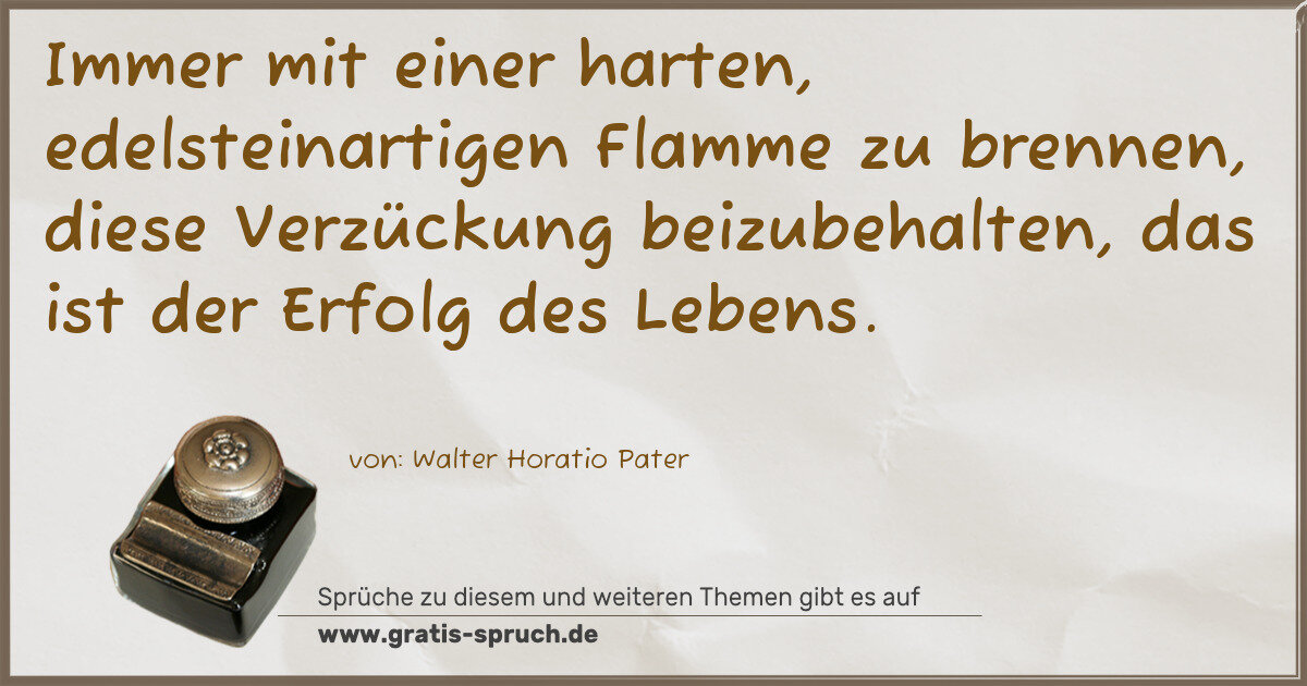 Immer mit einer harten, edelsteinartigen Flamme zu brennen, diese Verzückung beizubehalten, das ist der Erfolg des Lebens.