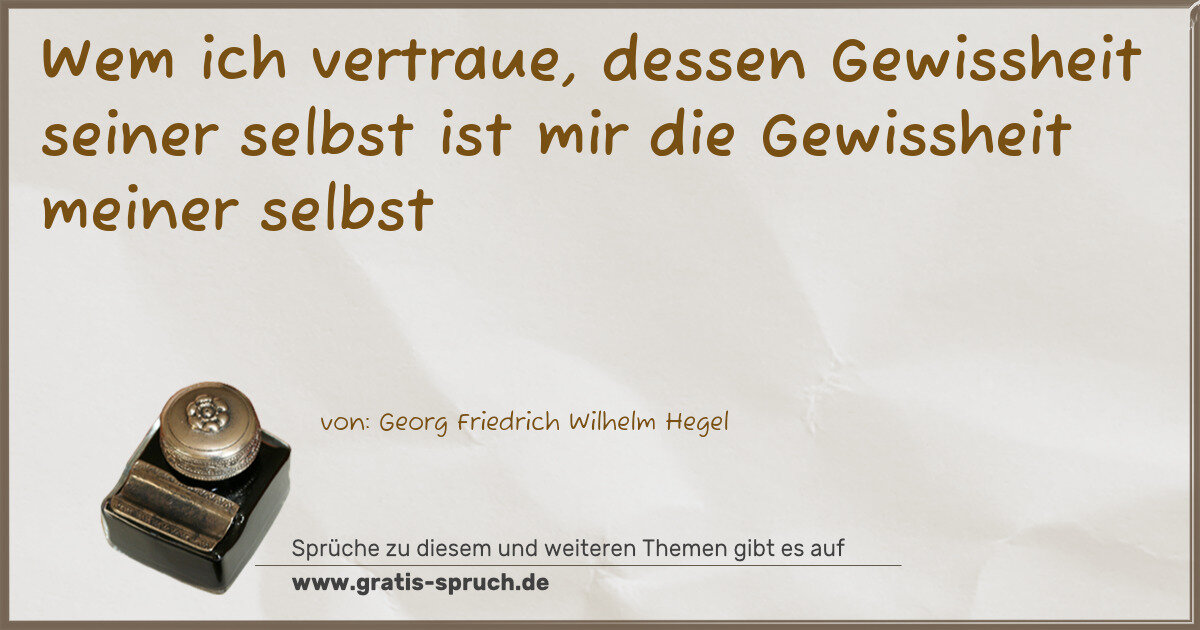 Wem ich vertraue, dessen Gewissheit seiner selbst ist mir die Gewissheit meiner selbst