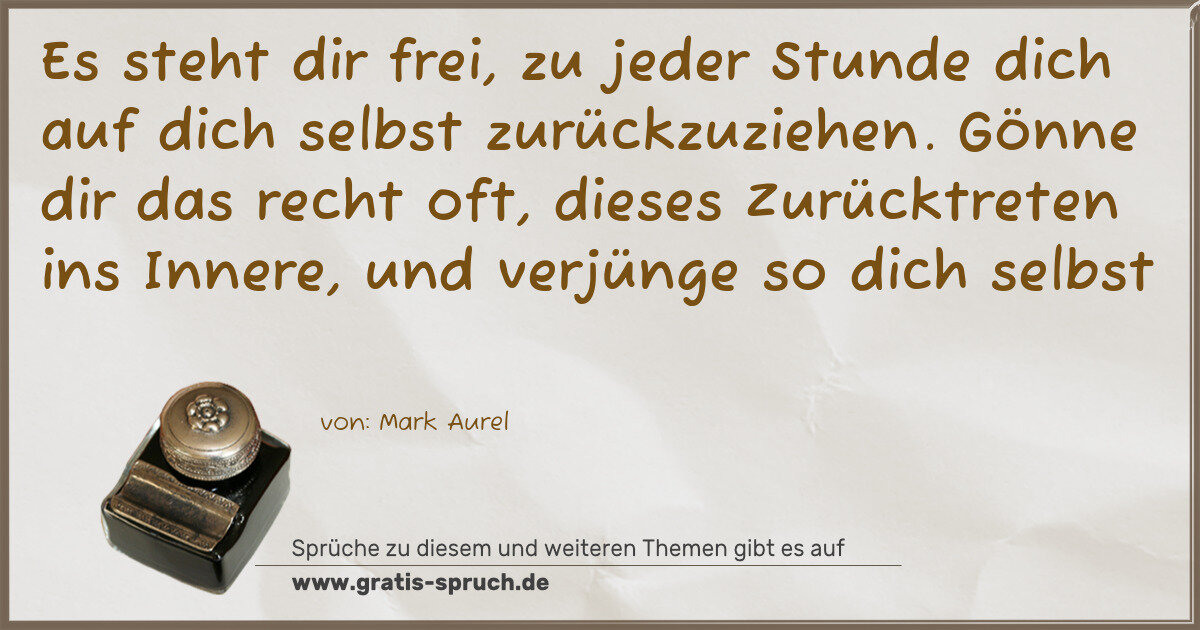 Es steht dir frei, zu jeder Stunde dich auf dich selbst zurückzuziehen. Gönne dir das recht oft, dieses Zurücktreten ins Innere, und verjünge so dich selbst