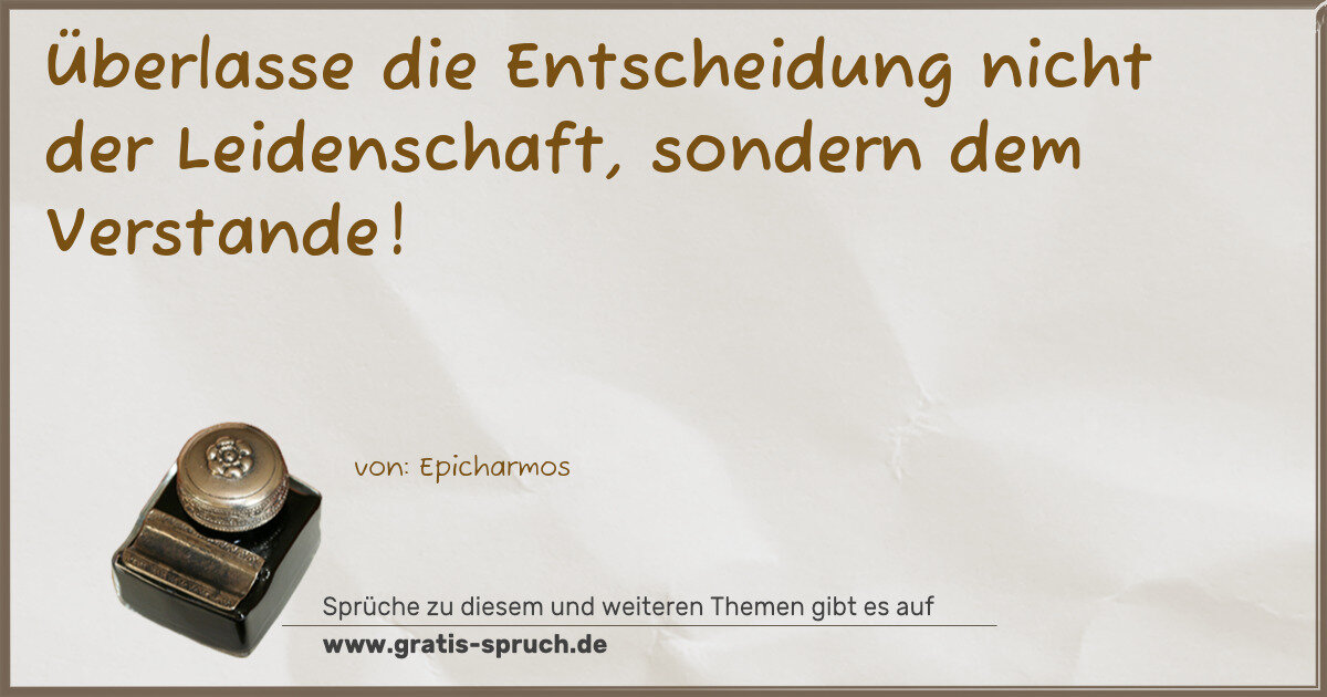 Überlasse die Entscheidung nicht der Leidenschaft, sondern dem Verstande!