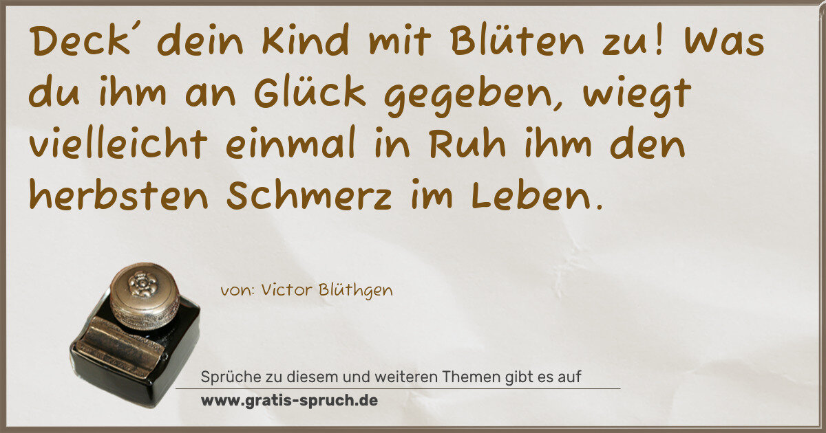 Deck' dein Kind mit Blüten zu! Was du ihm an Glück gegeben, wiegt vielleicht einmal in Ruh ihm den herbsten Schmerz im Leben.