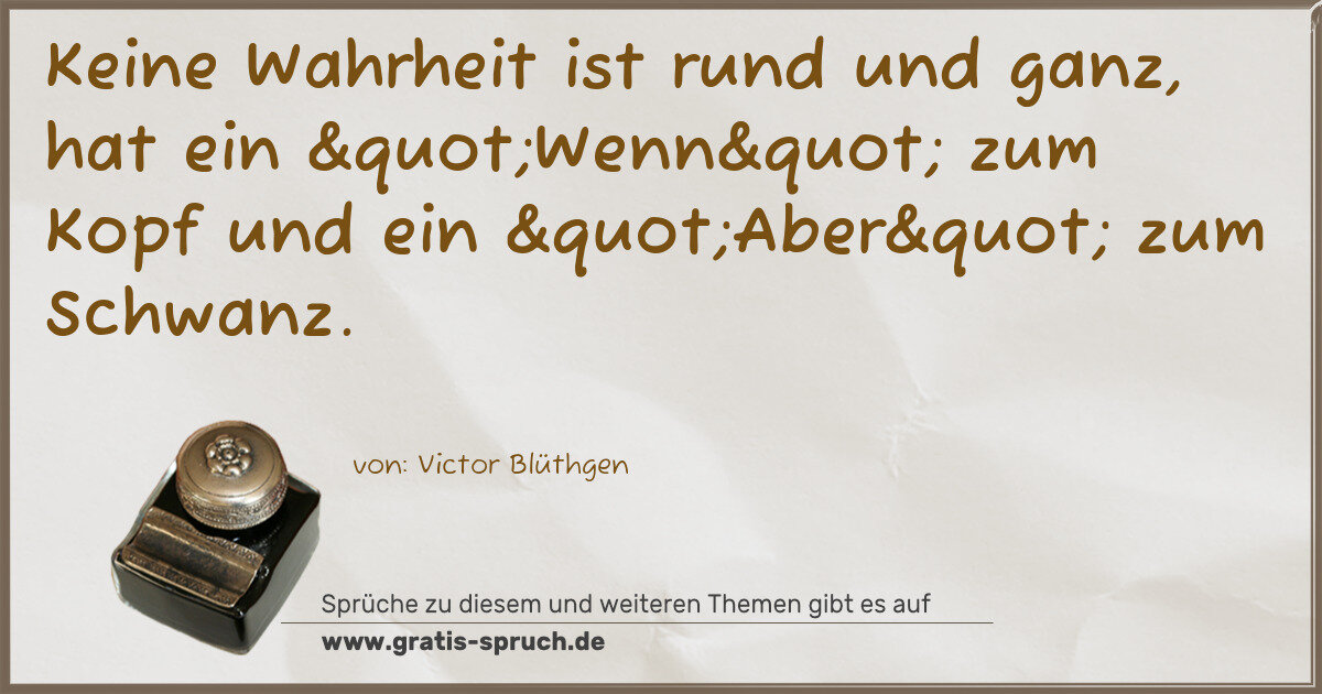 Keine Wahrheit ist rund und ganz, hat ein "Wenn" zum Kopf und ein "Aber" zum Schwanz.
