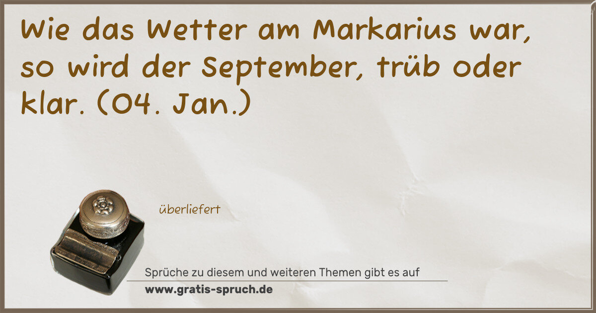 Wie das Wetter am Markarius war, so wird der September, trüb oder klar. (04. Jan.)