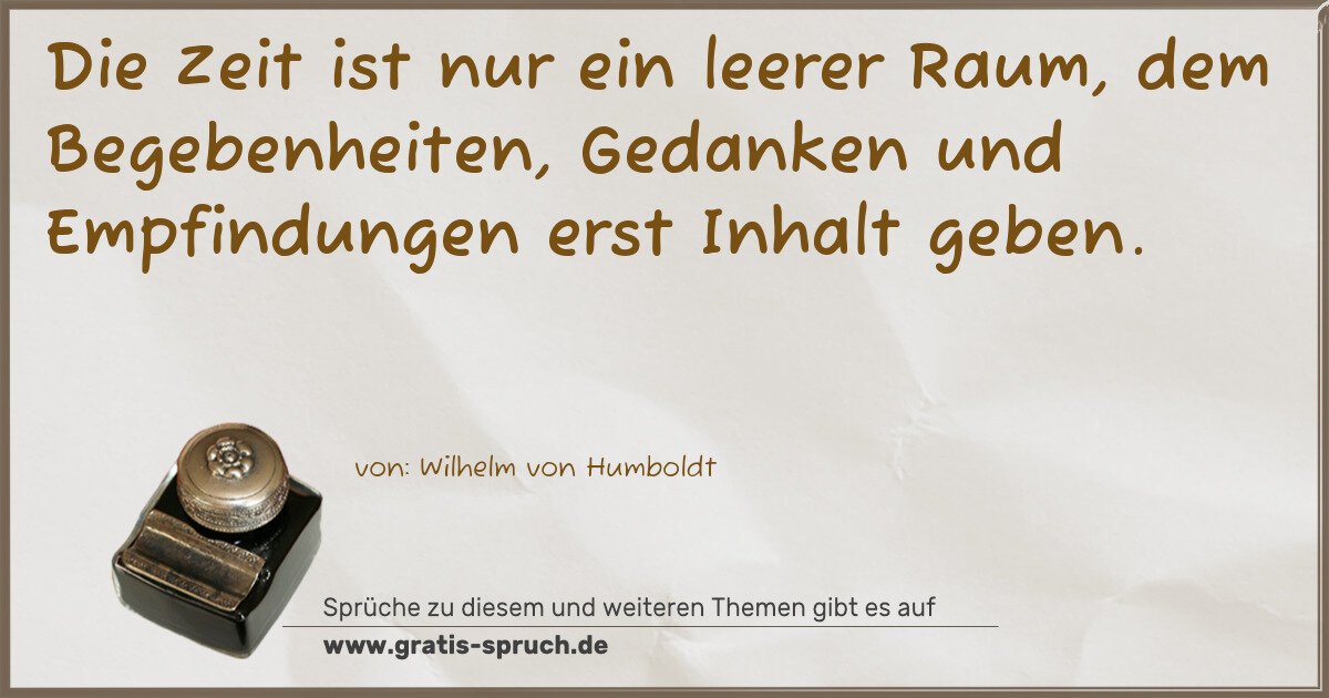 Die Zeit ist nur ein leerer Raum, dem Begebenheiten, Gedanken und Empfindungen erst Inhalt geben.