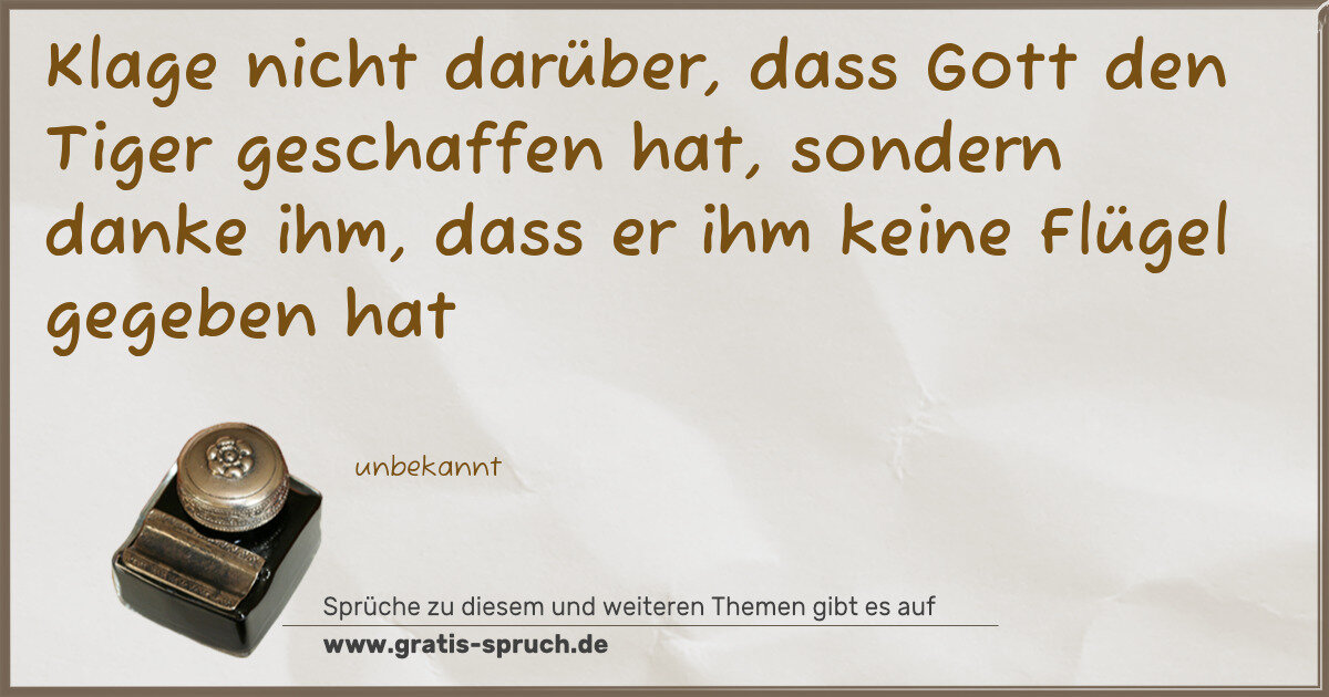 Klage nicht darüber, dass Gott den Tiger geschaffen hat, sondern danke ihm, dass er ihm keine Flügel gegeben hat