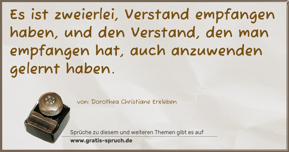 Es ist zweierlei, Verstand empfangen haben, und den Verstand, den man empfangen hat, auch anzuwenden gelernt haben.