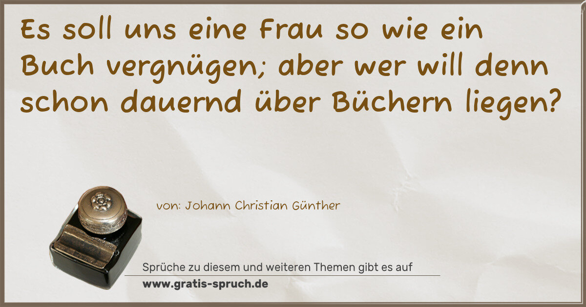 Es soll uns eine Frau so wie ein Buch vergnügen; aber wer will denn schon dauernd über Büchern liegen?