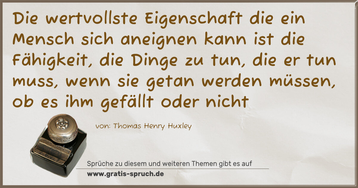 Die wertvollste Eigenschaft die ein Mensch sich aneignen kann ist die Fähigkeit, die Dinge zu tun, die er tun muss, wenn sie getan werden müssen, ob es ihm gefällt oder nicht
