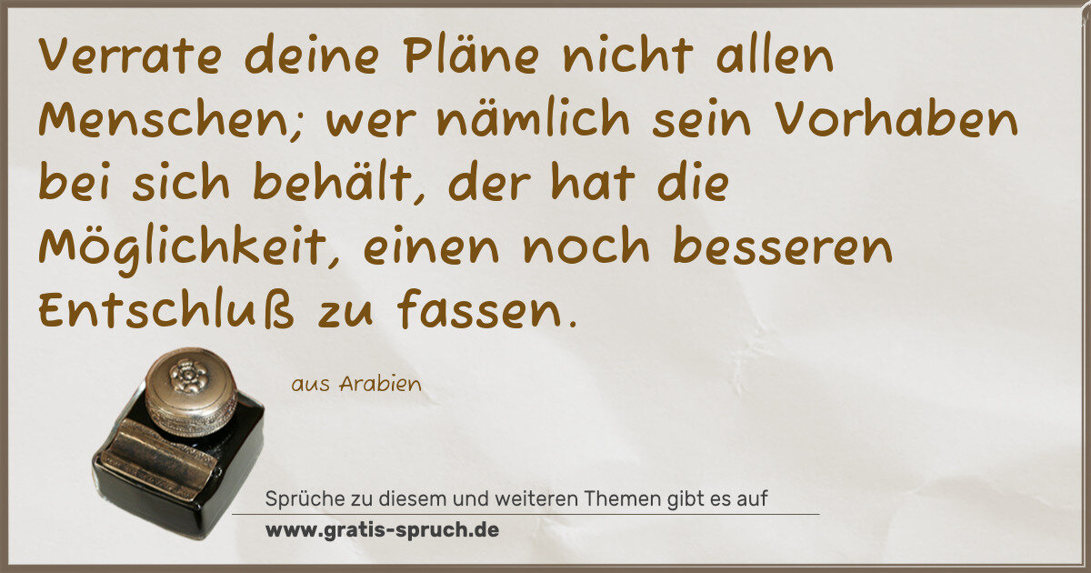 Verrate deine Pläne nicht allen Menschen; wer nämlich sein Vorhaben bei sich behält, der hat die Möglichkeit, einen noch besseren Entschluß zu fassen.