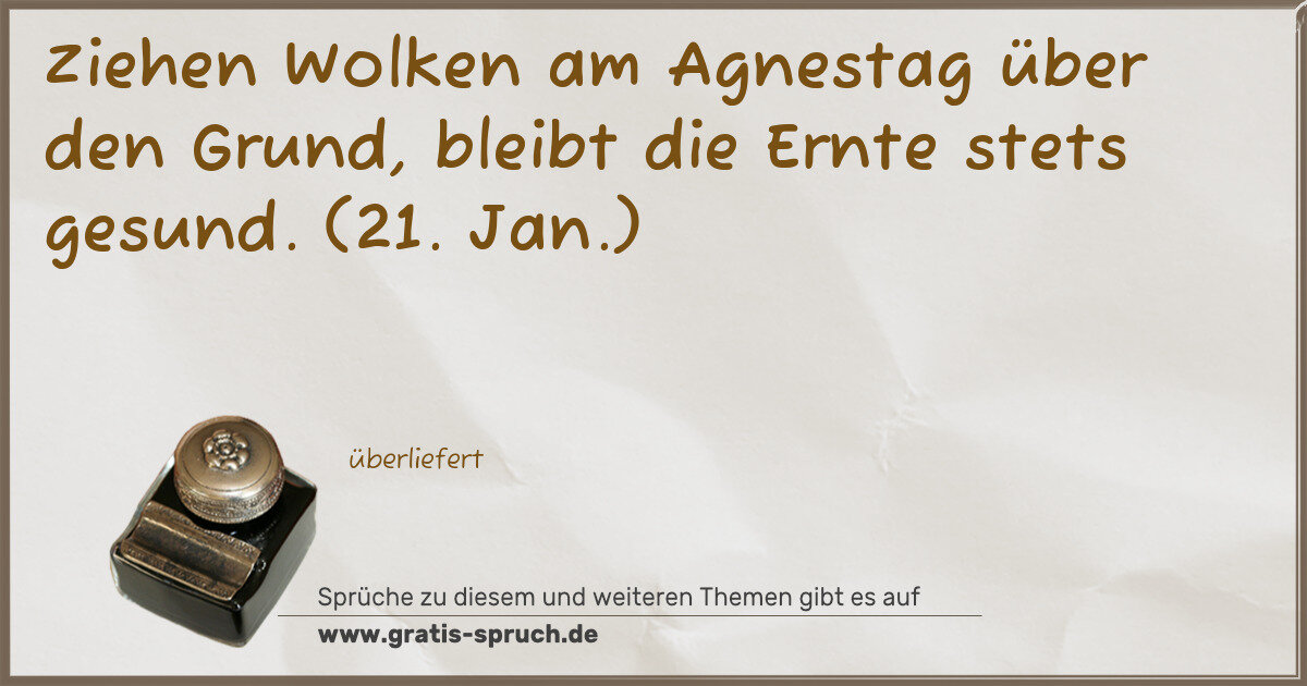 Ziehen Wolken am Agnestag über den Grund, bleibt die Ernte stets gesund. (21. Jan.)