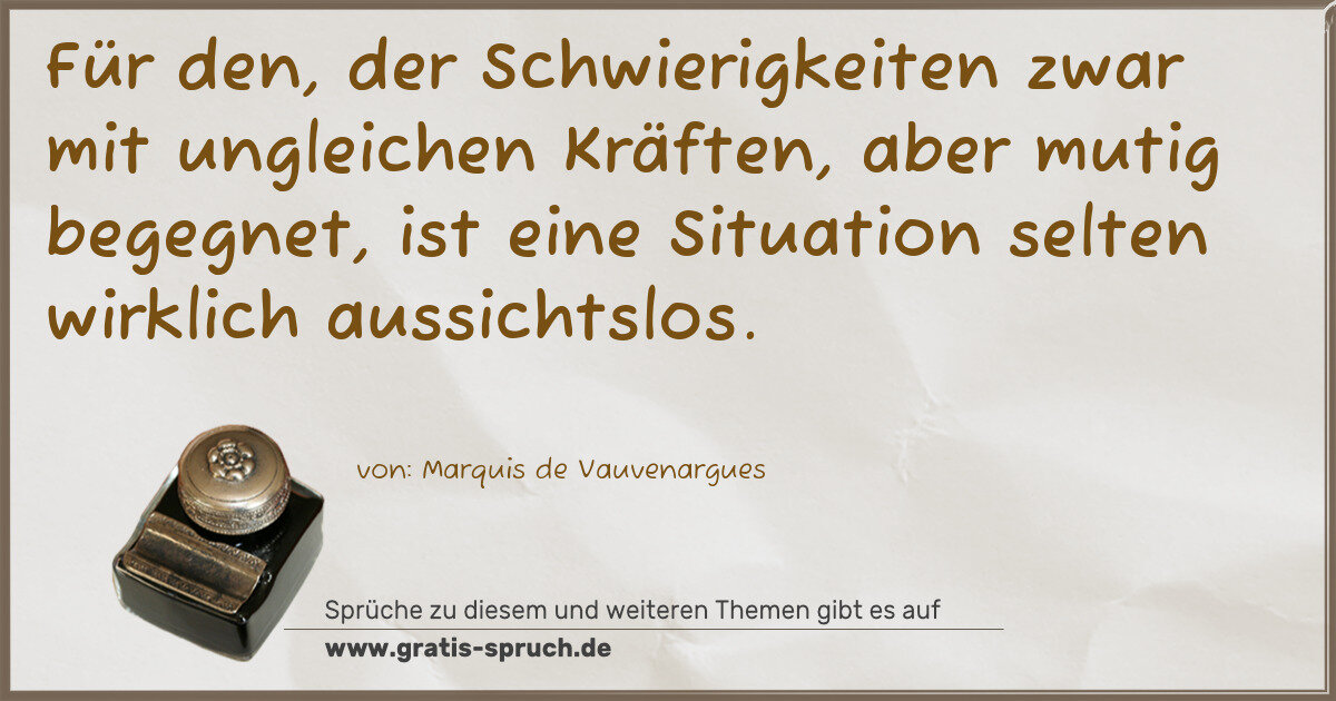 Für den, der Schwierigkeiten zwar mit ungleichen Kräften, aber mutig begegnet, ist eine Situation selten wirklich aussichtslos.