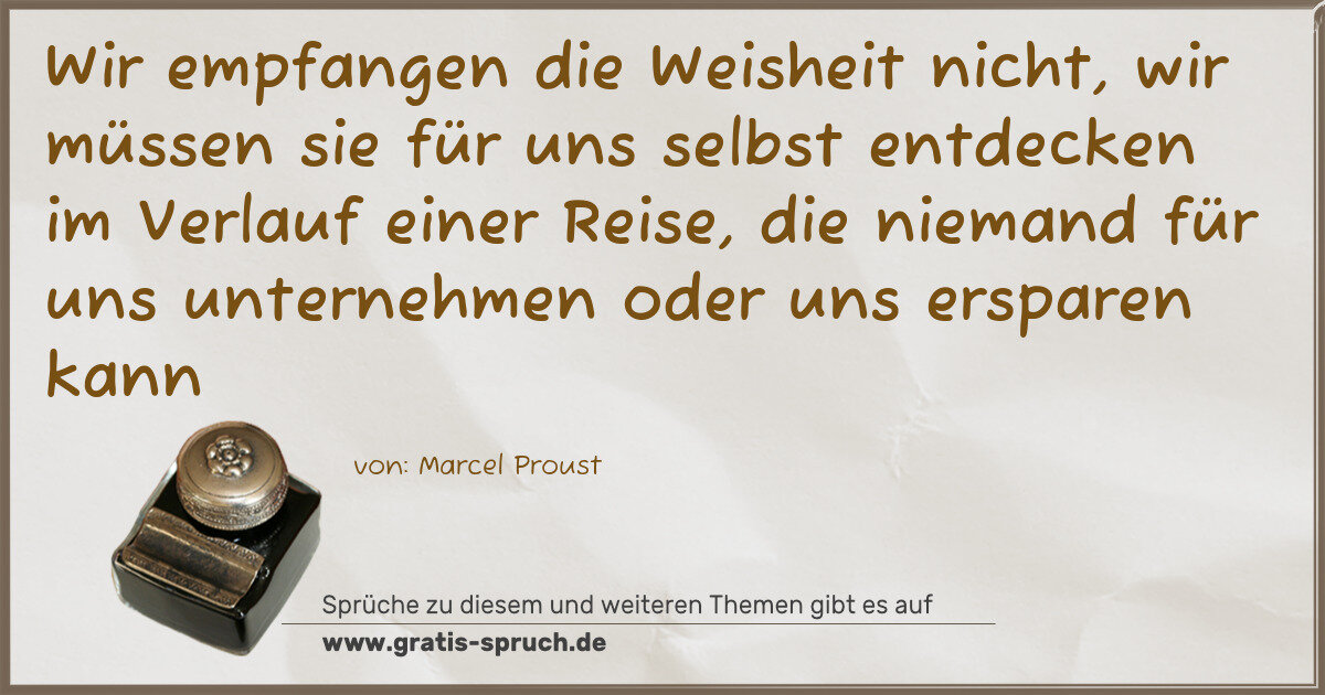 Wir empfangen die Weisheit nicht, wir müssen sie für uns selbst entdecken im Verlauf einer Reise, die niemand für uns unternehmen oder uns ersparen kann
