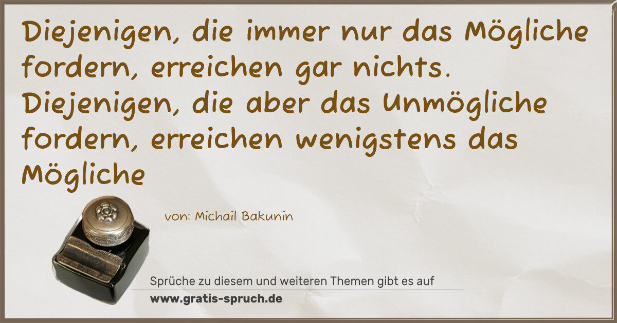 Diejenigen, die immer nur das Mögliche fordern, erreichen gar nichts. Diejenigen, die aber das Unmögliche fordern, erreichen wenigstens das Mögliche
