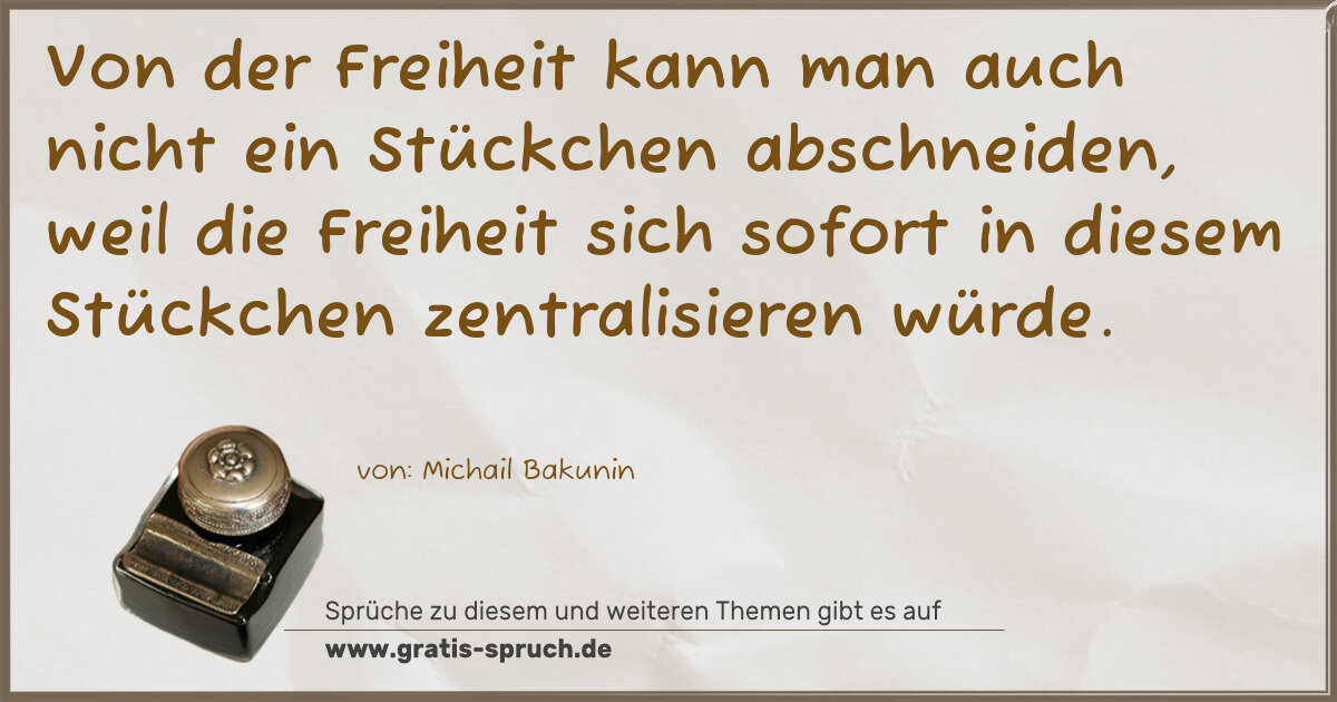 Von der Freiheit kann man auch nicht ein Stückchen abschneiden, weil die Freiheit sich sofort in diesem Stückchen zentralisieren würde.