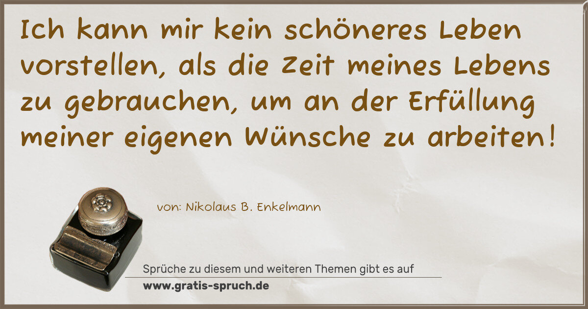 Ich kann mir kein schöneres Leben vorstellen, als die Zeit meines Lebens zu gebrauchen, um an der Erfüllung meiner eigenen Wünsche zu arbeiten!