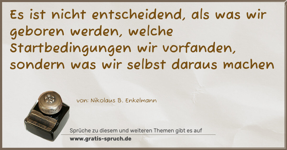 Es ist nicht entscheidend, als was wir geboren werden, welche Startbedingungen wir vorfanden, sondern was wir selbst daraus machen