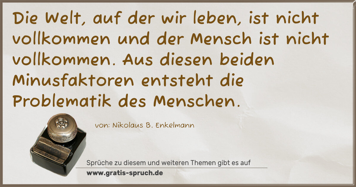 Die Welt, auf der wir leben, ist nicht vollkommen und der Mensch ist nicht vollkommen. Aus diesen beiden Minusfaktoren entsteht die Problematik des Menschen.