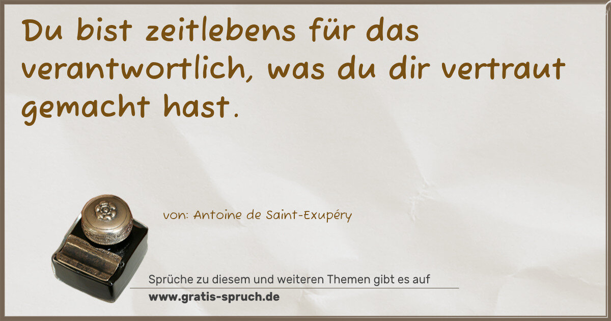 Du bist zeitlebens für das verantwortlich, was du dir vertraut gemacht hast.