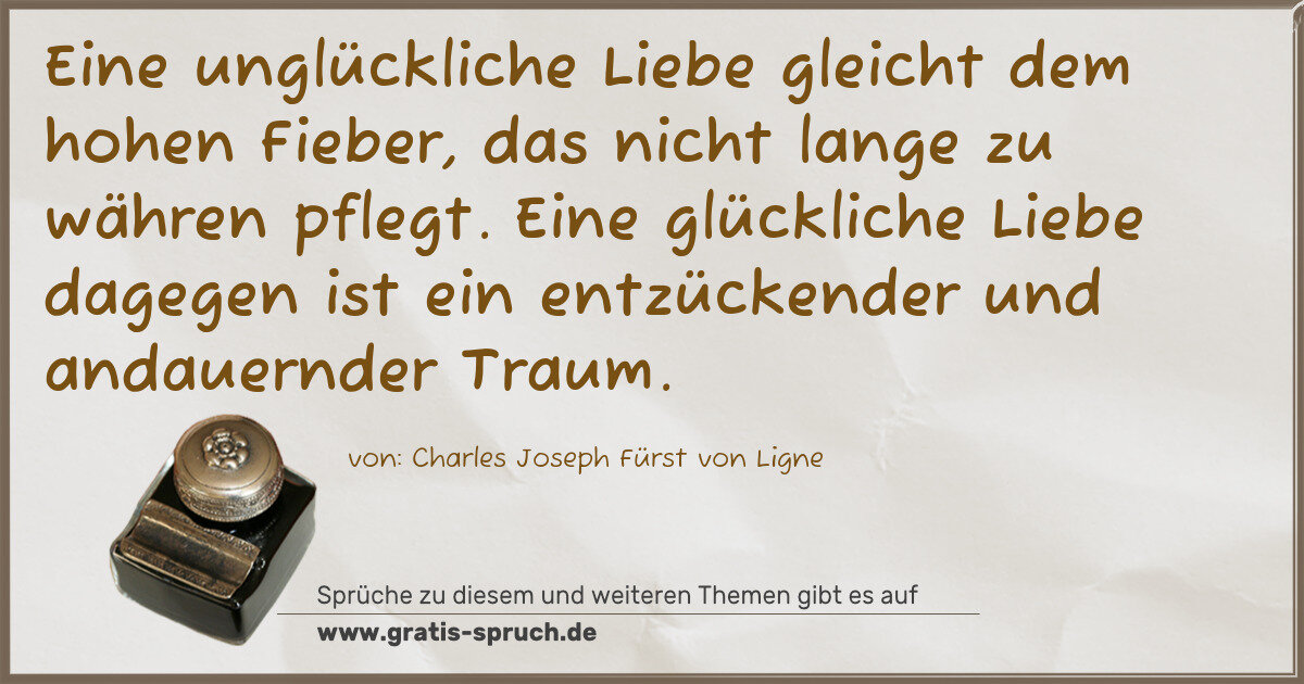 Eine unglückliche Liebe gleicht dem hohen Fieber, das nicht lange zu währen pflegt. Eine glückliche Liebe dagegen ist ein entzückender und andauernder Traum.