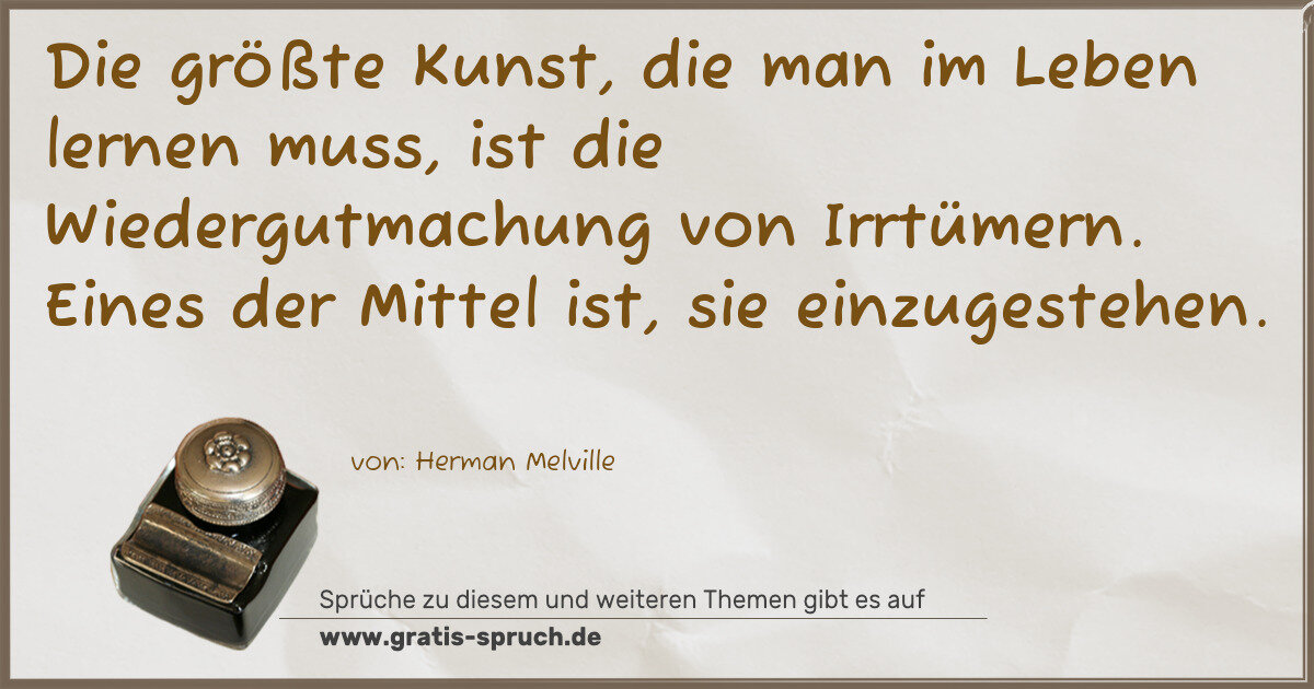 Die größte Kunst, die man im Leben lernen muss, ist die Wiedergutmachung von Irrtümern. Eines der Mittel ist, sie einzugestehen.