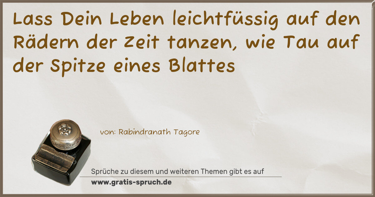 Lass Dein Leben leichtfüssig auf den Rädern der Zeit tanzen, wie Tau auf der Spitze eines Blattes