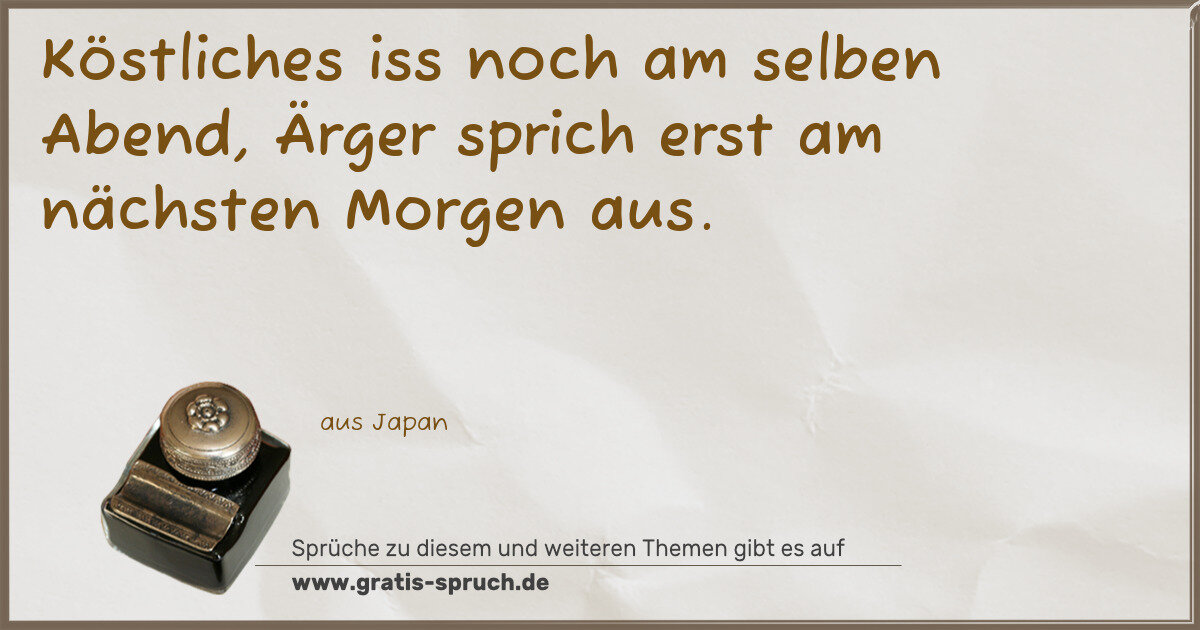 Köstliches iss noch am selben Abend, Ärger sprich erst am nächsten Morgen aus.