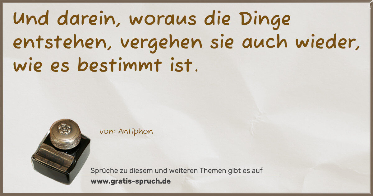 Und darein, woraus die Dinge entstehen, vergehen sie auch wieder, wie es bestimmt ist.