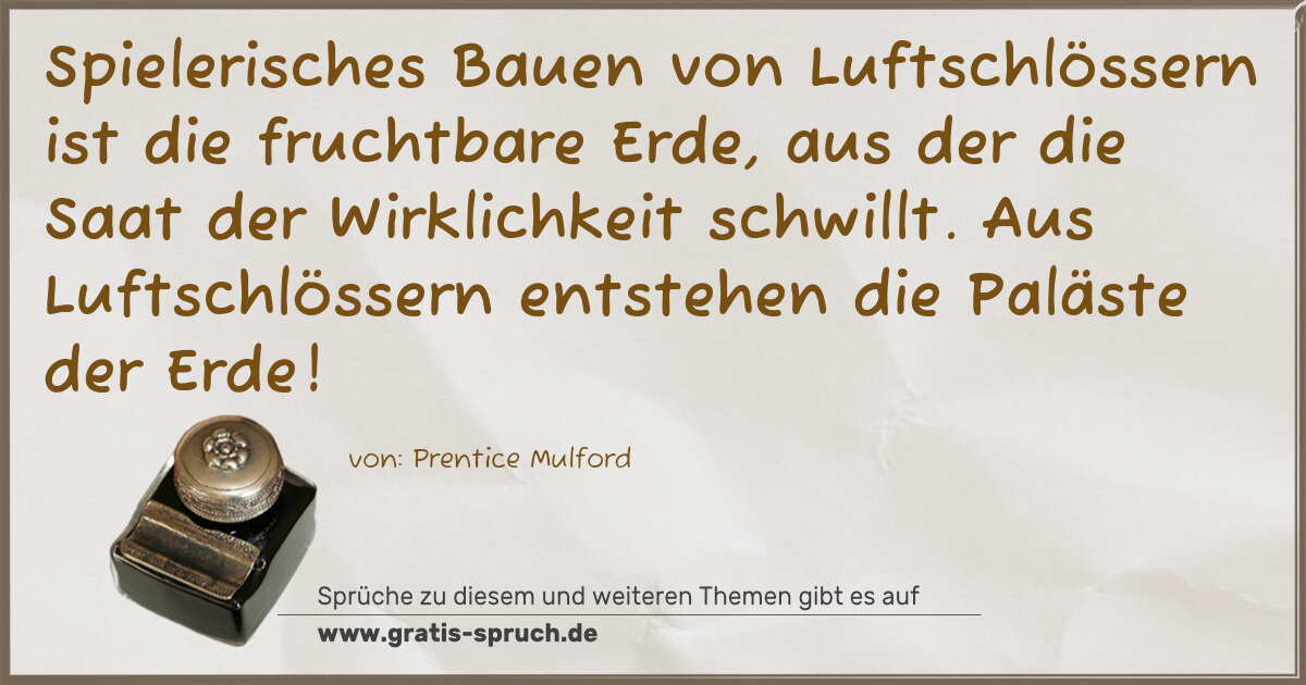 Spielerisches Bauen von Luftschlössern ist die fruchtbare Erde, aus der die Saat der Wirklichkeit schwillt. Aus Luftschlössern entstehen die Paläste der Erde!
