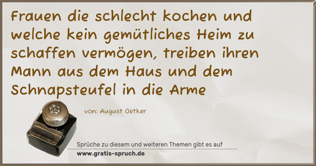 Frauen die schlecht kochen und welche kein gemütliches Heim zu schaffen vermögen, treiben ihren Mann aus dem Haus und dem Schnapsteufel in die Arme