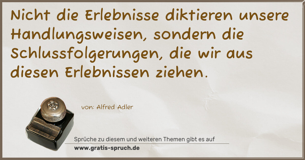 Nicht die Erlebnisse diktieren unsere Handlungsweisen, sondern die Schlussfolgerungen, die wir aus diesen Erlebnissen ziehen.