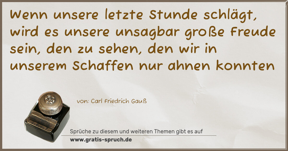 Wenn unsere letzte Stunde schlägt, wird es unsere unsagbar große Freude sein, den zu sehen, den wir in unserem Schaffen nur ahnen konnten