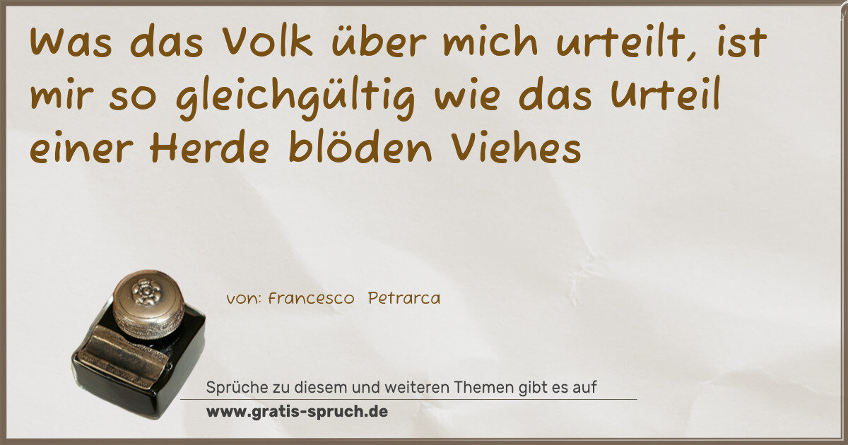 Was das Volk über mich urteilt, ist mir so gleichgültig wie das Urteil einer Herde blöden Viehes