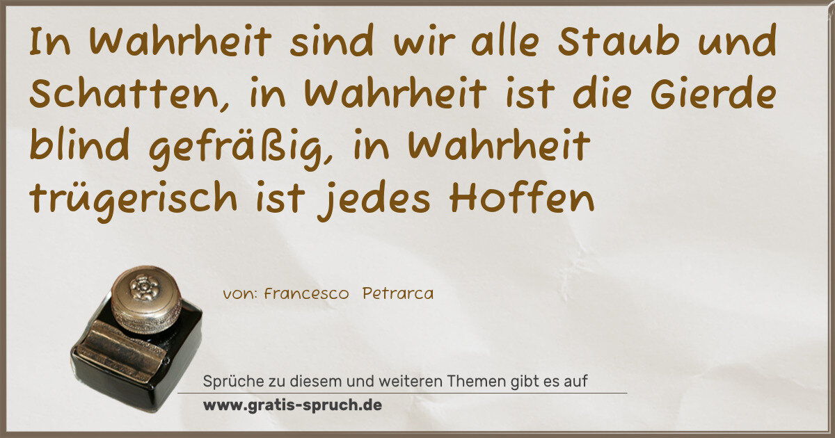 In Wahrheit sind wir alle Staub und Schatten, in Wahrheit ist die Gierde blind gefräßig, in Wahrheit trügerisch ist jedes Hoffen