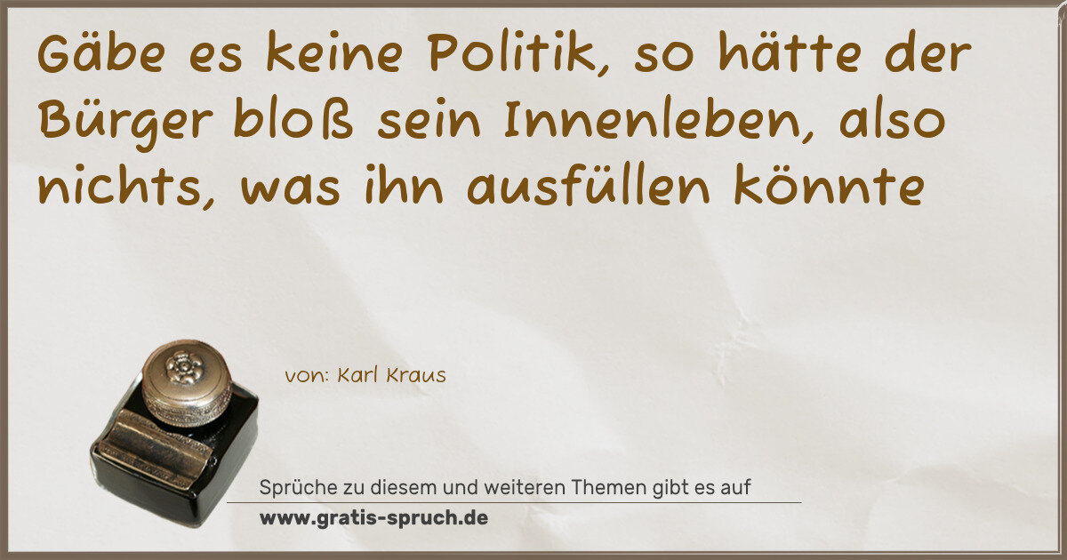 Gäbe es keine Politik, so hätte der Bürger bloß sein Innenleben, also nichts, was ihn ausfüllen könnte