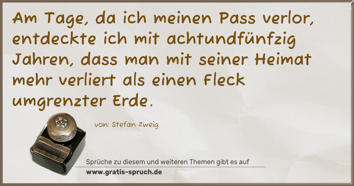 Am Tage, da ich meinen Pass verlor, entdeckte ich mit achtundfünfzig Jahren, dass man mit seiner Heimat mehr verliert als einen Fleck umgrenzter Erde.