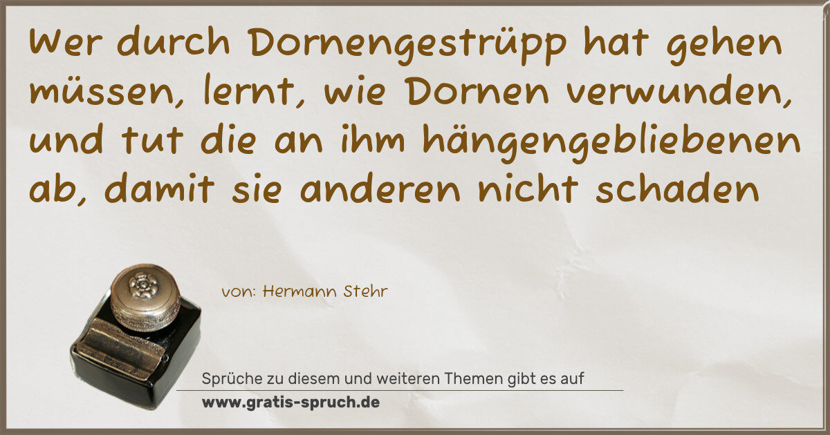 Wer durch Dornengestrüpp hat gehen müssen, lernt, wie Dornen verwunden, und tut die an ihm hängengebliebenen ab, damit sie anderen nicht schaden