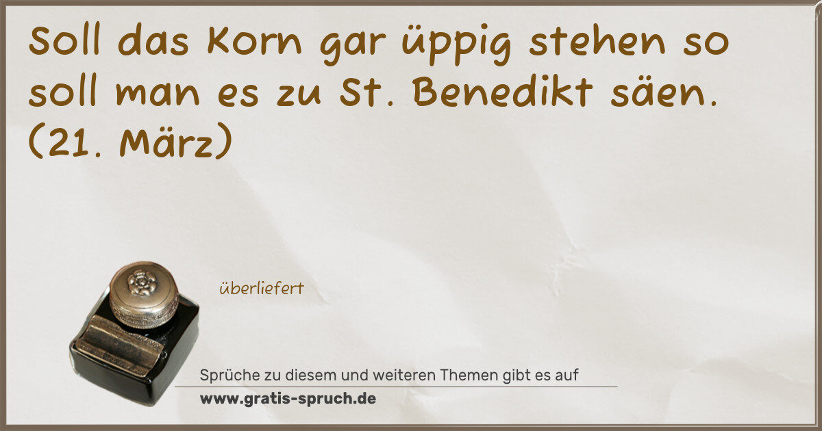 Soll das Korn gar üppig stehen so soll man es zu St. Benedikt säen. (21. März)