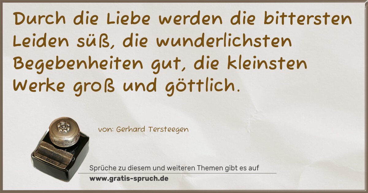 Durch die Liebe werden die bittersten Leiden süß, die wunderlichsten Begebenheiten gut, die kleinsten Werke groß und göttlich.