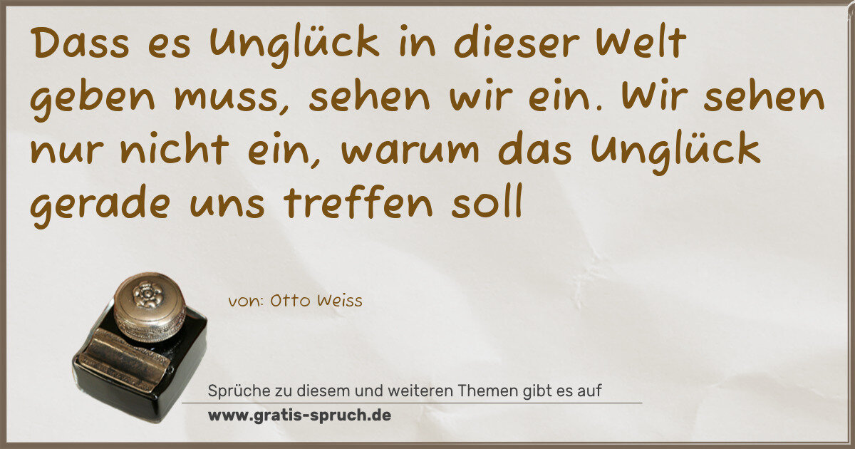 Dass es Unglück in dieser Welt geben muss, sehen wir ein. Wir sehen nur nicht ein, warum das Unglück gerade uns treffen soll