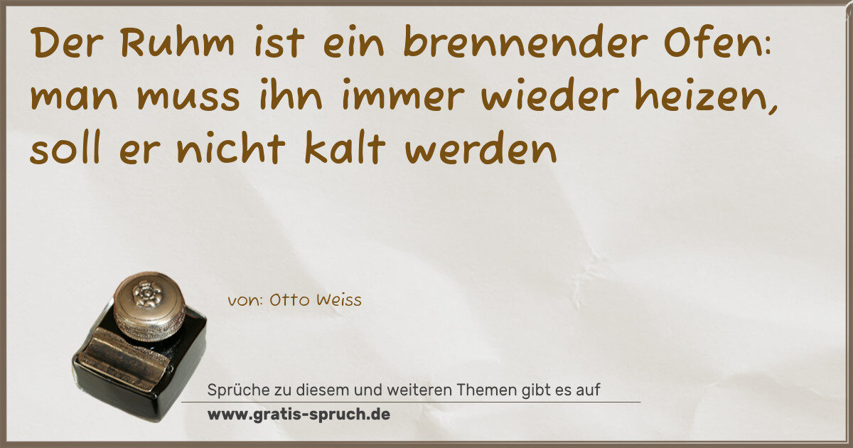 Der Ruhm ist ein brennender Ofen: man muss ihn immer wieder heizen, soll er nicht kalt werden