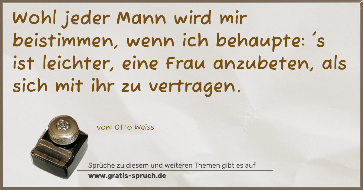 Wohl jeder Mann wird mir beistimmen, wenn ich behaupte: 's ist leichter, eine Frau anzubeten, als sich mit ihr zu vertragen.